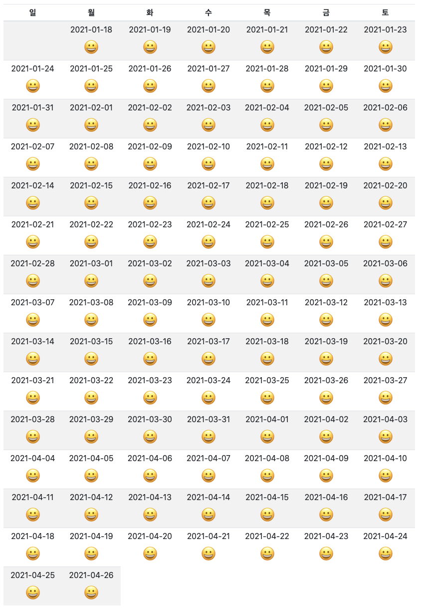 준비 중인 스터디를 통해 나름 개인적으로 100일 커밋을 생활하 하는 계기가 되었으면 좋겠다.