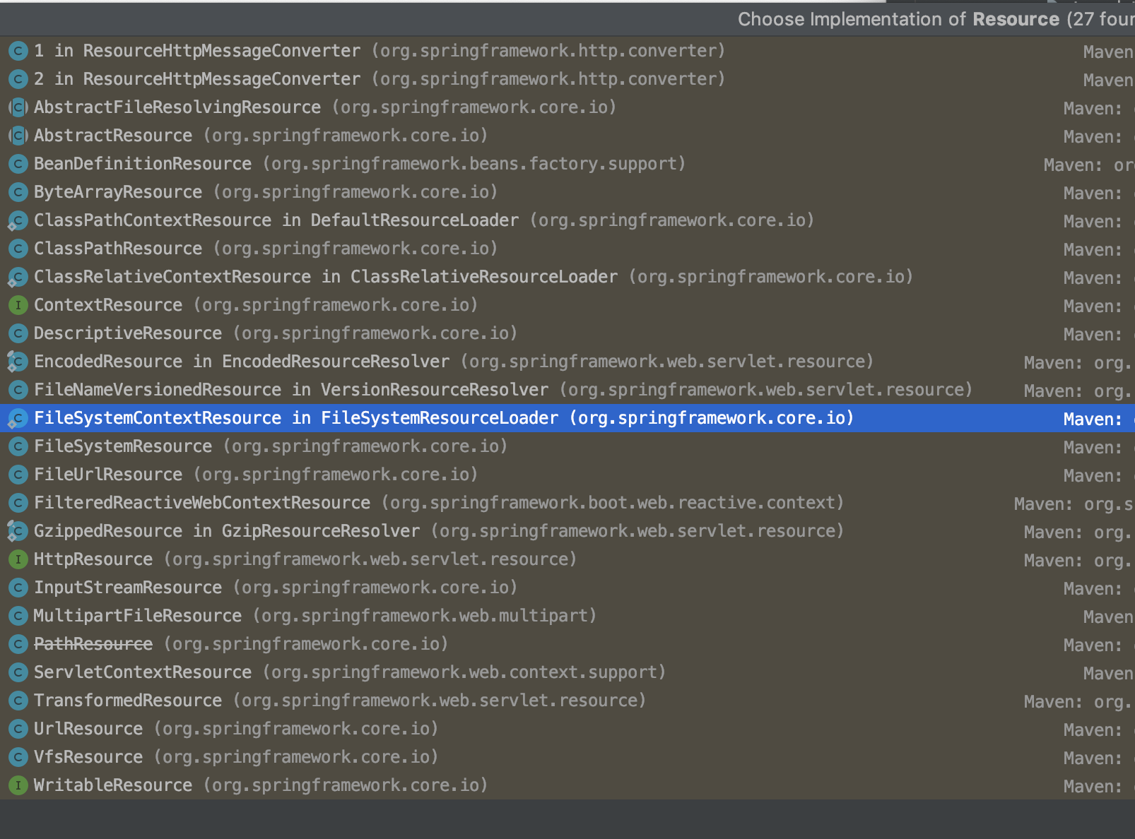 Resource를 구현한 구현체는 아래와 같이 많이 존재한다.