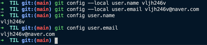 --local 부분을 --global 로 변경하면 하나의 레포 뿐만 아니라 전체적인 user를 변경할 수 있다.